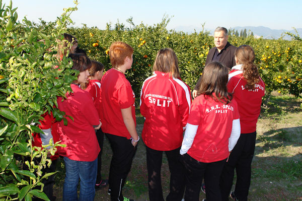 Mlade nogometašice obilazak su započele na jednoj od plantaža mandarina gdje ih je gradonačelnik Gabrić ukratko upoznao s načinom uzgoja, ali i različitim sortama mandarina, nakon čega su se okušale u berbi. Mladim sportašicama bilo je to prvo branje u životu, ali su vrlo brzo savladale posao i već nakon desetak minuta obavljale su ga kao prave Neretvanke. Na pitanje je li lakše igrati nogomet ili brati mandarine kapetanica momčadi Marijana Vranješ bez puno razmišljanja odgovorila je da je lakše igrati nogomet.