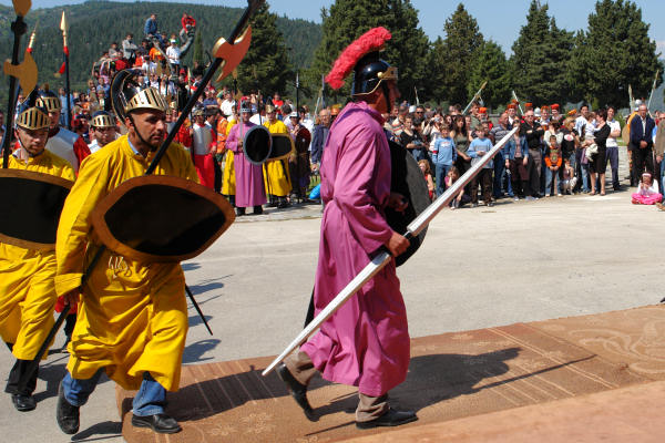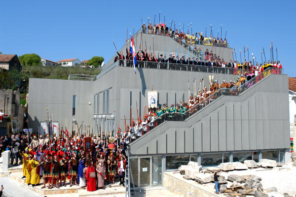 Spomenik Domagojevi strijelci u funkciji tribine Domaćini smotre – žudije iz Vida sa Šimunom Smjena straže