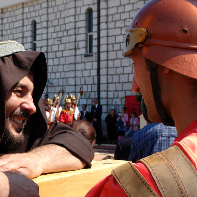 E tako! – Šime Stikoman iz zraka „rikta“ šarenu vojsku… … da bi napravio fotografiju sličnu ovoj Uspon stubama na najvišu točku antičke Narone – žudije župe Sv. Nikole Biskupa