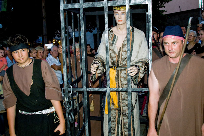 brojnom publikom dužd je u lancima sproveden do Trga, gdje je stavljen u kavez.