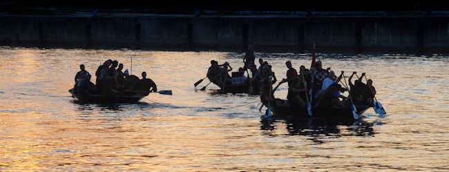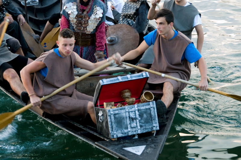 koji su se lađama vratili iz boja sa zarobljenim duždom i ratnim plijenom. Pred