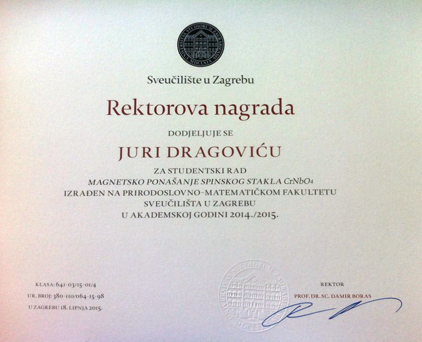Jure Dragović – dobitnik Rektorove nagrade 2015.
