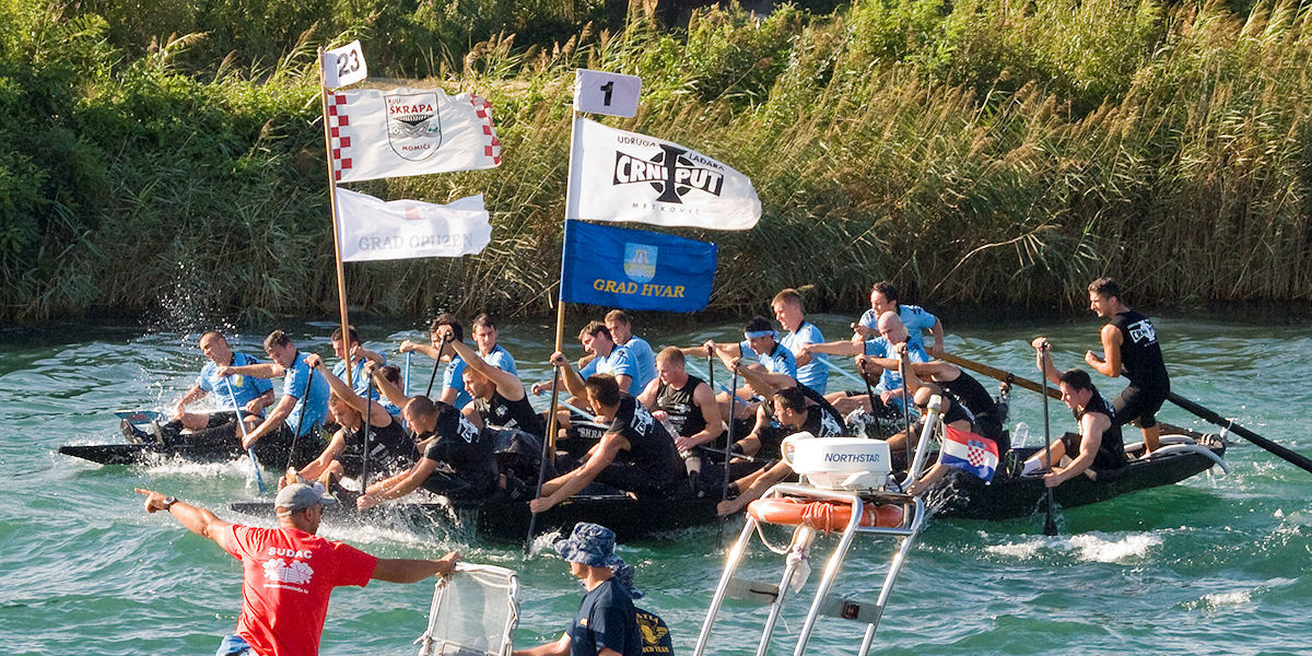 cijelom širinom Neretve, iako se u prvomu slučaju vremenski duže vesla. Crna