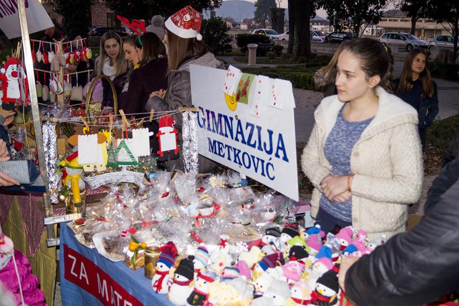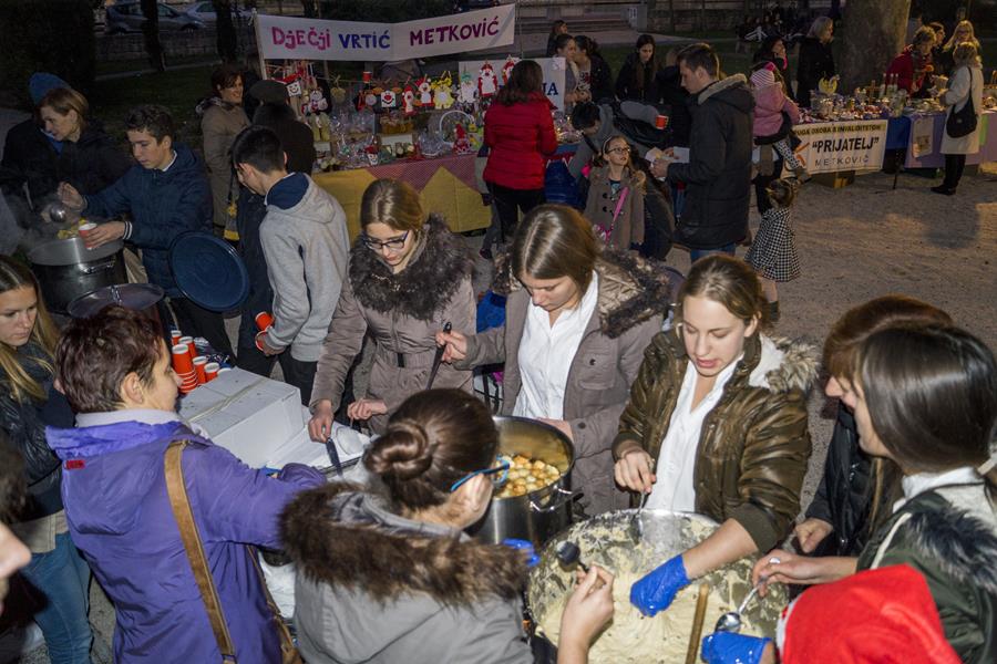 U organizaciji Turističke zajednica Grada Metkovića i Srednje škola Metković večeras je u Gradskome parku održana manifestacija Slatki Božić u Neretvi. Za veselu božićnu atmosferu bili su zaduženi učenici SŠ Metković i Mandolinski orkestar KUD-a Metković (koji zbog drugih obveza nismo fotografirali), a posjetitelji su se mogli okrijepiti kuhanim vinom i čajem te na štandovima kupiti različite vrste kolača, božićnoga nakita i drugih ručno rađenih predmeta. Uz učenike Srednje škole Metković izlagali su Dječji vrtić Metković, Gimnazija Metković, UOSI Prijatelj Metković, Udruga Otac Ante Gabrić, Udruga Power progressive art i Jadranka Jerković.