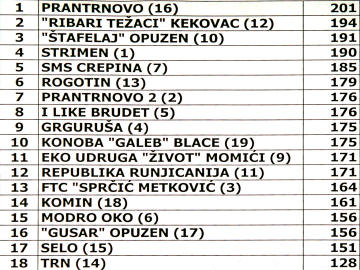 lanjski pobjednici "Ribari težaci" i dalje ostaju u vrhu |