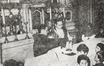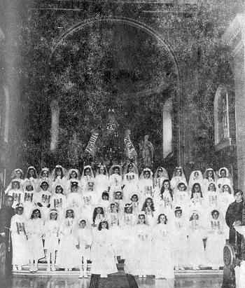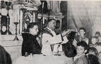 Nati'snula se djeca kod oltara. Iza njih sve puno mla-doži. Na