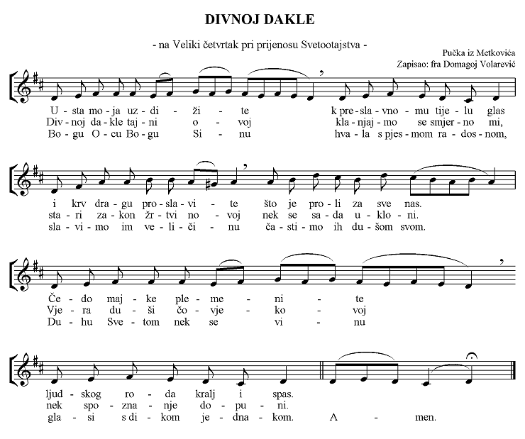 našega Isusa Krista po Mateju, pučki napjev iz Provincije Presvetog