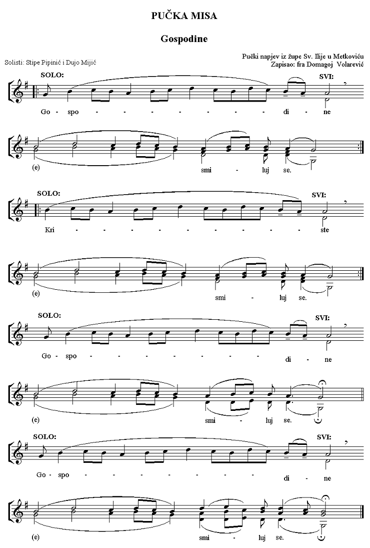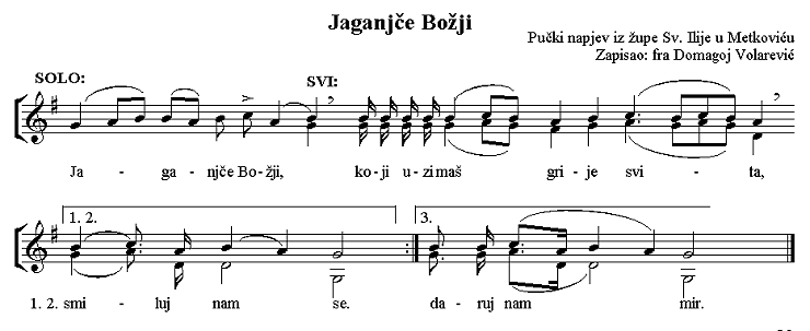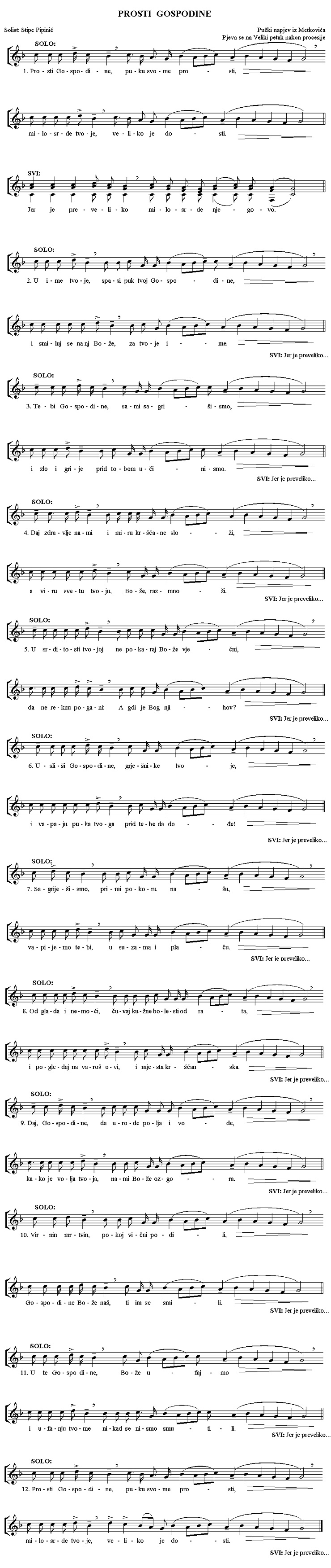 Tu je iznimka najpoznatiji metkovski pučki napjev Prosti, Gospodine,