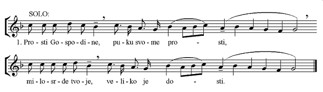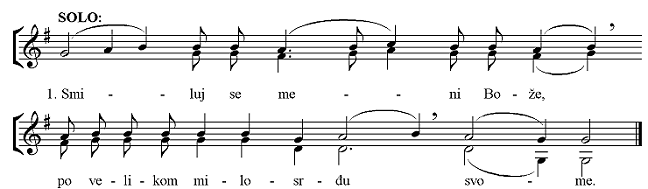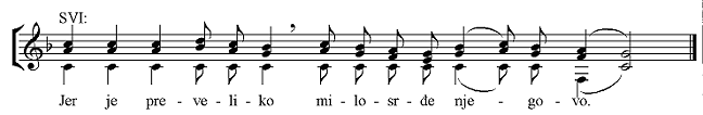 koji se pjeva na Veliki petak. Melizam je samo na kraju, dok napjev