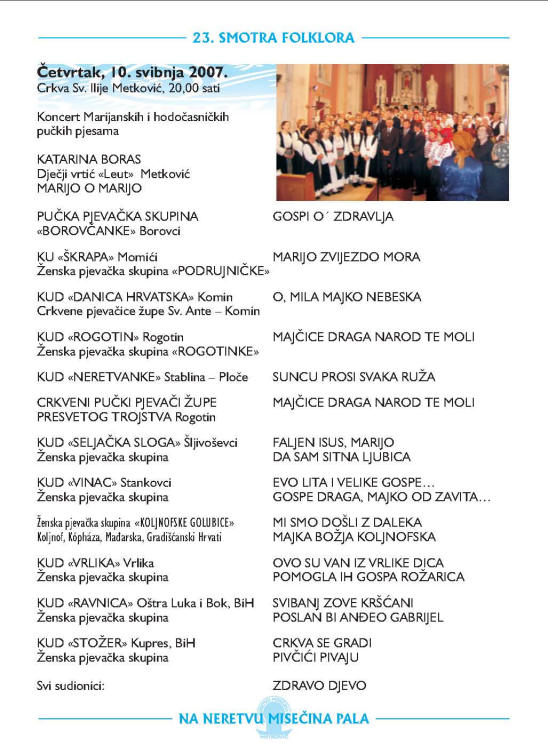 23. smotra folklora "Na Neretvu misečina pala" - svibanj 2007.