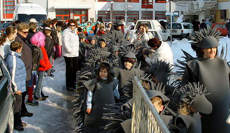 Maškarana povorka se uz pomoć Gradske zimske službe uspjela probiti do mjesta održavanja dječjeg maskenbala...