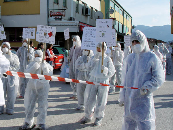 "Cijepimo od gripe samo žene lipe" - zmeđu ostalog poručuju ovi borci protiv ptičje gripe.