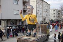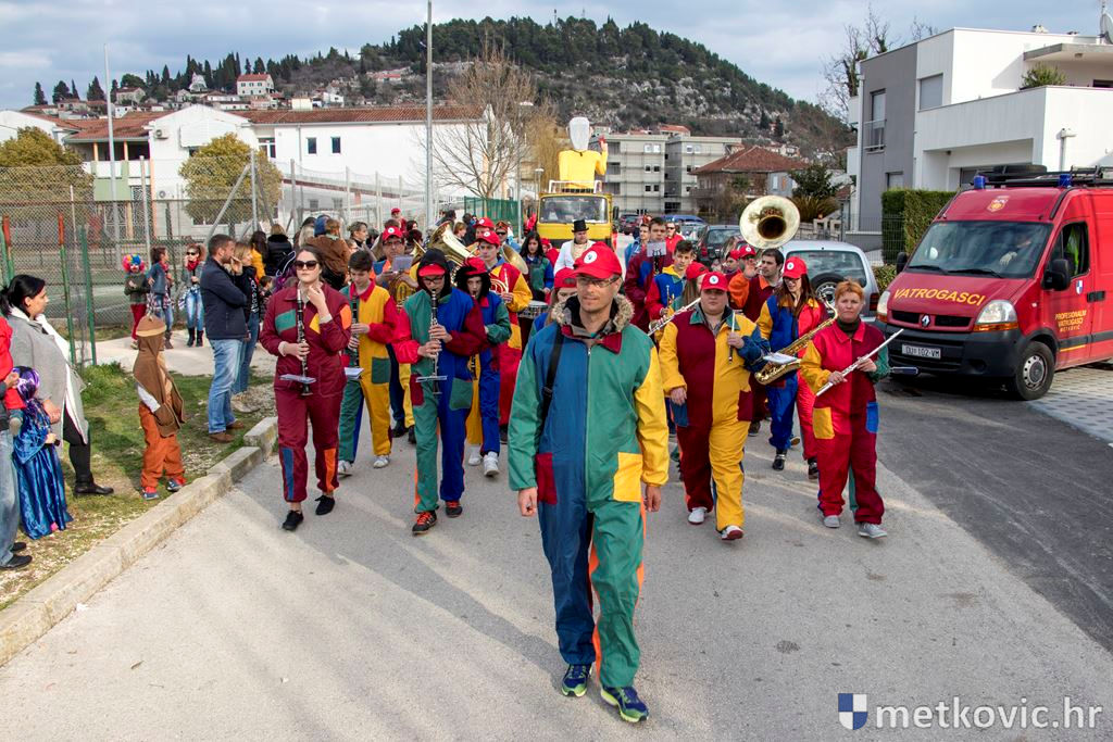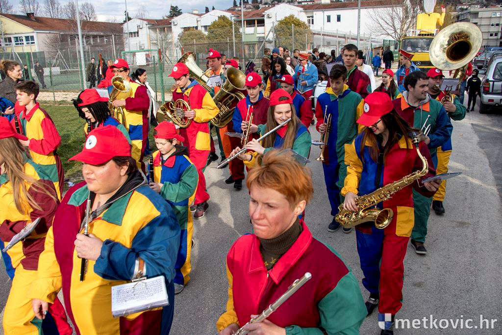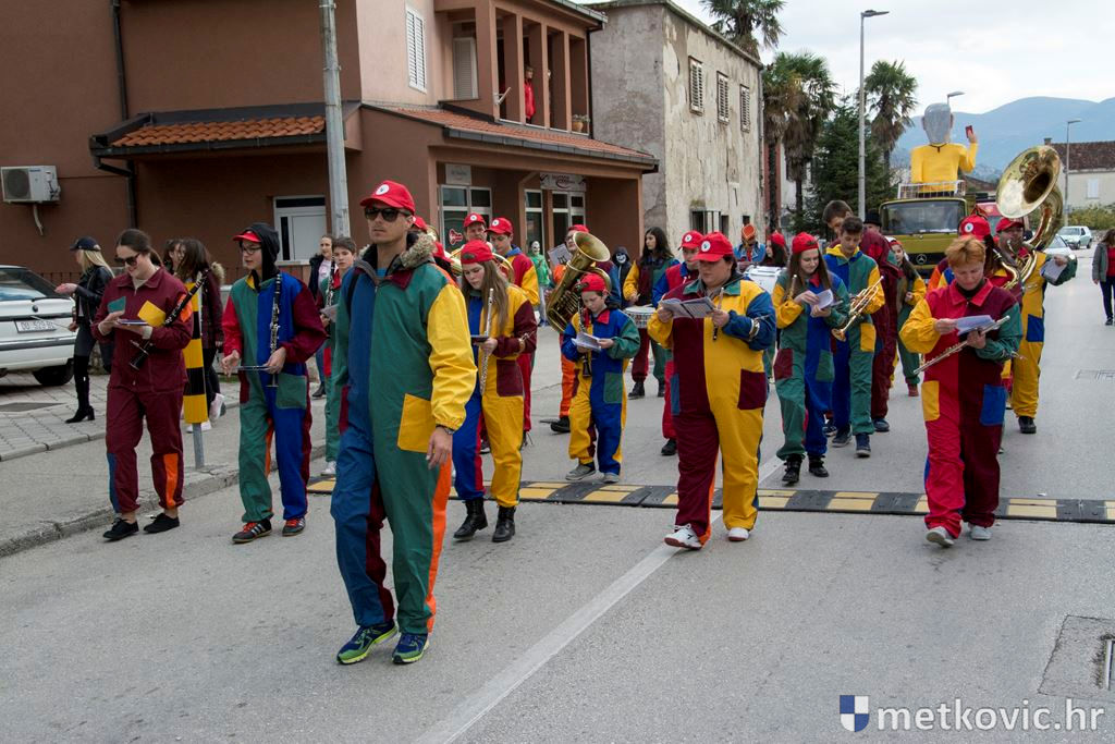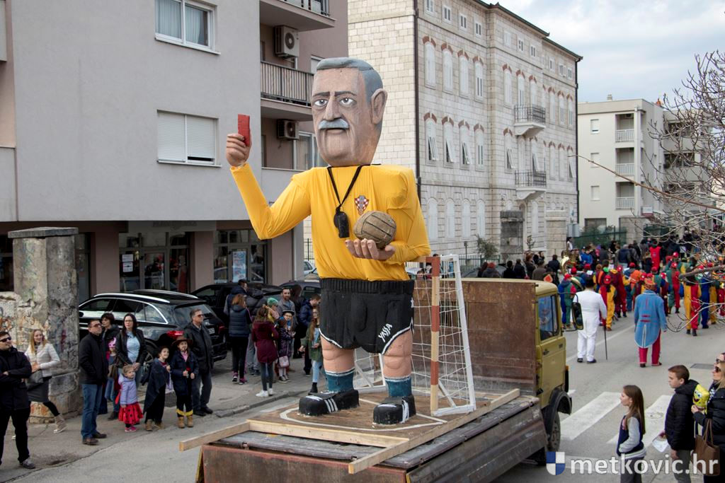Sve je u bezimenoj metkovskoj 'ulici', tj. putu uz Vrtić, bilo kao po špagu. Gradska je glazba na čelu s meštrom Stipanom Krmićem 'upuhivala' svoje instrumente, tete su redale djecu, a na začelje je tradicionalno stao žuti Dodigov kamion s ovogodišnjim Markom Krnjevalom. Pred njim su stajala trojica glavonja od maškara na čelu s glavnim glavonjom Brankom Medakom. Čini se da je ovogodišnjemu Marku lik 'posudio' Mateo Beusan – Oko Sokolovo sa znakovito uzdignutom crvenim kartonom. Kome je upućen možemo pogađati, no ne više od jednom.