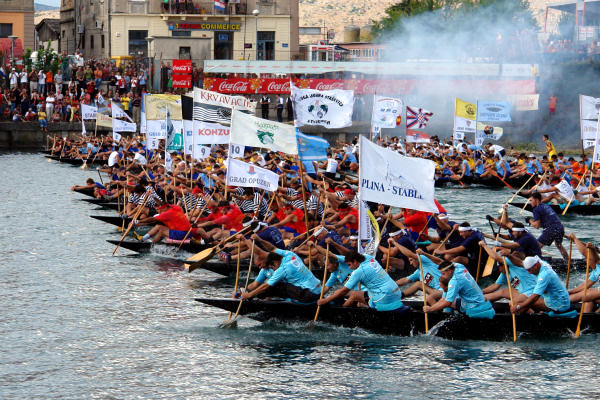 Start je, kao i uvijek, bio spektakularan. Trideset tri lađe, u dva reda, pokrenule su se nakon zvuka sirene uz detonacije tzv. topničkog udara. Nastala je borba za čelne pozicije koje osiguravaju mirnije veslanje, no to baš nije bilo jednostavno jer je Neretva bila pregrađena plutačama koje su odvajale lađarsku stazu od koridora za prateće brodovlje. Ove se godine problem brodova pokušao riješiti na taj način, no izgleda da ne postoji idealno rješenje.