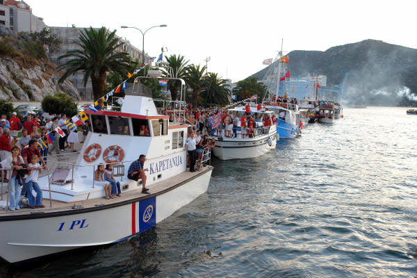 Pred njim je i veći brod „Delfin“ na kojem se vijore zastave grada.