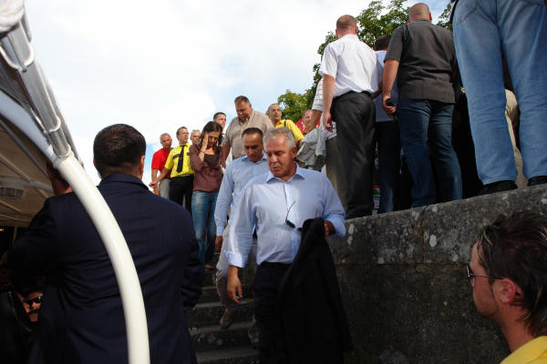 Naš plan bio je, kao i prethodnih dviju godina, sa zapovjednoga broda pratiti Maraton od Metkovića do Ploča. Uredno smo dobili novinarsku akreditaciju i na vrijeme se bez problema ukrcali na brod Bibe, koji je ove godine zamijenio puno veću Palagružu. Čekalo se na ukrcaj Premijera i ostalih gostiju. Nakon što su oni stupili na brod, kapetan Bibe shvatio je kako se na brodu nalazi puno više ljudi nego što je bilo najavljeno (i koliko brod smije primiti) pa, potpuno ispravno, naređuje prekid ukrcaja. Tu nastaju problemi i neugodne scene jer se mnogi s kartama ne uspijevaju ukrcati. Očito je da su se mnogi na neki način ukrcali ilegalno ili je izdan veći broj karata. Kada smo vidjeli da su na suhom ostali kolege iz Večernjaka i Slobodne i mi smo odlučili napustiti brod te Maraton popratiti na drugi način.