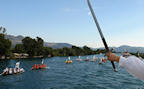 Lađe su skrenule u Crnu rijeku, a prateći brodovi plove prema Ušću.