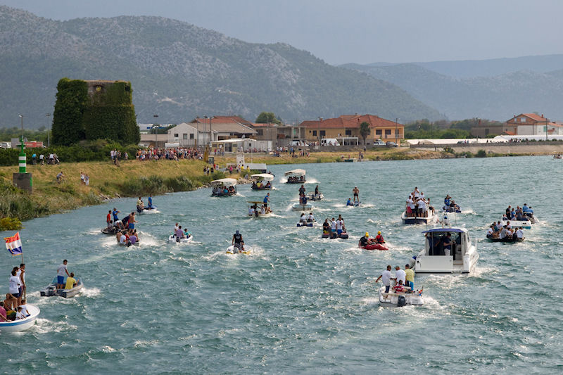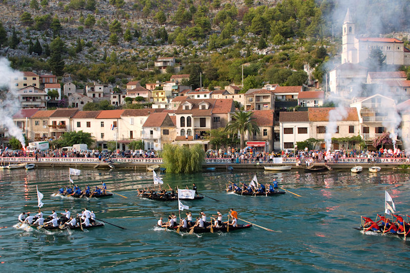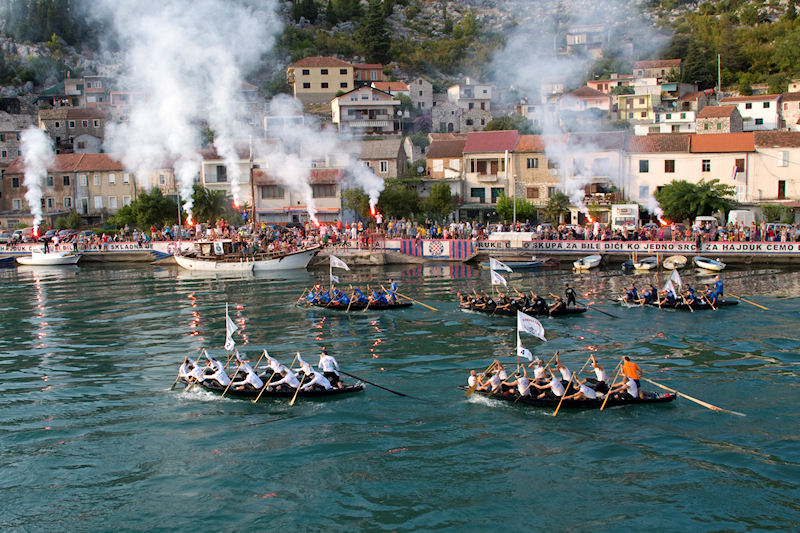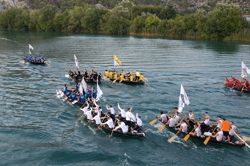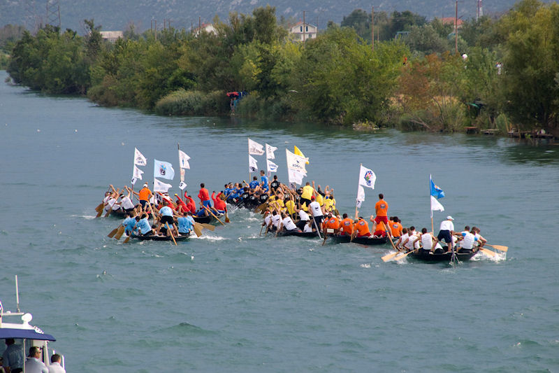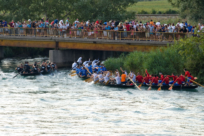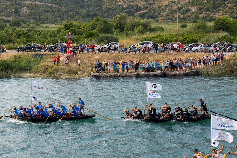 Sve do iza Opuzena u prvoj šestorki bile su tri metkovske ekipe: Crni put, Jerkovac i Vid. Tada u proboj kreće kominski Gusar kojega u parić prati Jerkovac, dok uz obalu Stablinu prati Crni put. Na ključnoj dionici između Komina i ulaska u Crnu rijeku ponovno nastaje gužva i preslagivanje, no Crni put nevjerojatnom silinom s četvrtoga se mjesta poravnava s Gusarima, nažalost u vanjskoj stazi pa Gusari prvi ulaze u Crnu rijeku, što im daje veliku prednost. Izvrsni Jerkovac se s Baćinom bori za četvrtu poziciju, a Vid u Crnu rijeku ulazi kao sedmi.
