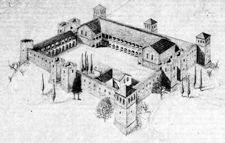 sastojala od nekoliko građevina povezanih hodnicima. Izvan toga