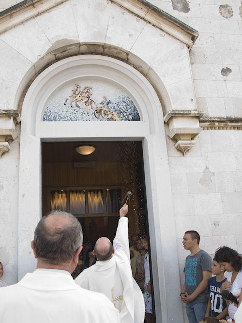 Na kraju euharistijskoga slavlja okupljenima je Svetoga Iliju čestitao župnik Gulić, nakon čega su se svi uputili pred crkveni ulaz iznad kojega je postavljen novi mozaik s prizorom svetoga Ilije u kočijama. Mozaik je blagoslovio fra Ante Akrap.