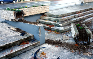 10.12.2006. - Betonska arla za cvijeće, preuzevši na sebe silinu udarca, jutros oko 4 sata spasila je četvoricu mladića, kada je njihov golf izletio iz zavoja ravno pred metkovsko kazalište.