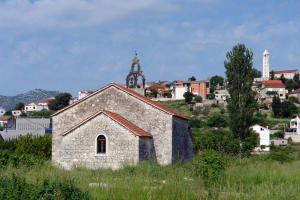 Žuti zvonik nove crkve sv. Nikole žuti se na posljednjim sunčevim zrakama. O kakvoj monumentalnoj građevini se radi govori i stara zgrada-crkva pred njom.