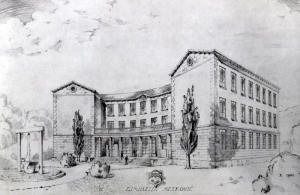 Skica ljetnoga kazališta s kućicom za kinoprojektor na terasi iznad glavnoga ulaza (nikada nije sagrađena).
