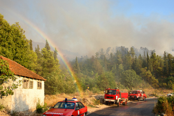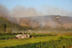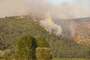 21.7.2007. - Požar što se danima približavao iz susjedne BiH noćas je prešao vrh Šibanice i u poslijepodnevnim satima došao na rub županijske ceste prema općini Zažablje.