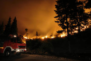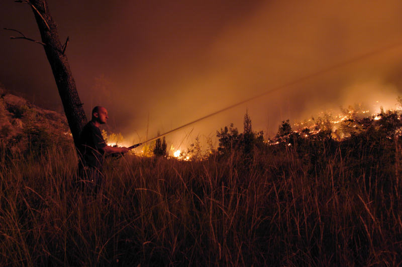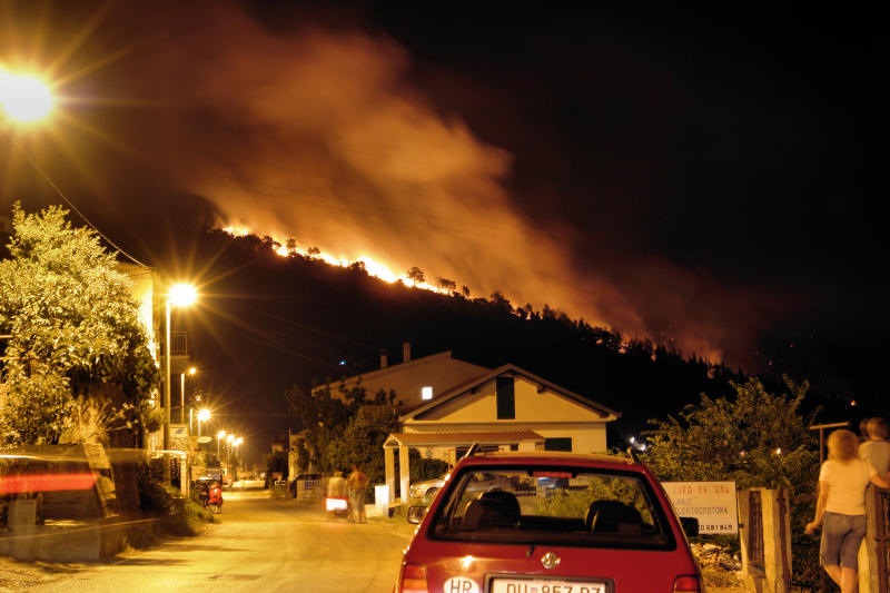 Metković, 22.7.2007. - Grad Metković, prema podacima iz popisa 2001., sada bi mogao imati oko 17.000 stanovnika. Na rubu grada gori nam park šuma Predolac-Šibanica s tendencijom da ujutro požar ugrozi prve kuće. I sve to je prepušteno brizi pedesetak vatrogasaca iz JVP Metković i njihovih kolega iz Stona i Državne interventne postrojbe iz Dubrovnika u sklopu koje su vatrogasci sa kontinenta.