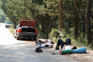 Mjesta na kojima je požar zaustavljen. Tlo je potpuno mokro Mladi pripadnici JVP Metković sa brentačama Na povratku u grad prošli smo kraj momaka iz Orebića koji su čvrsto spavali nakon burne noći
