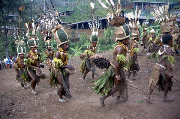Neumorni plesači uz pratnju bubnjeva plesali su i danju i noću. Rituali su još iskonski. U većini ostalih dijelova Papue Nove Gvineje već postoje plesne skupine čiji se plesovi temelje na kulturi svoga područja, ali su samo odraz te kulture budući da su izgubili prvobitno značenje. Festival narodnoga folklora iznimno je likovno interesantan, ali jedna usporedba s tim plesačima, ne bi bila poštena. Sva su plemena Papue Nove Gvineje kristijanizirana djelovanjem raznih kršćanskih crkava. Svi zajedno bore za zabranu takvih poganskih obreda. U većini krajeva, to im je i uspjelo.