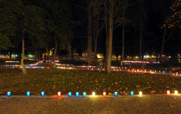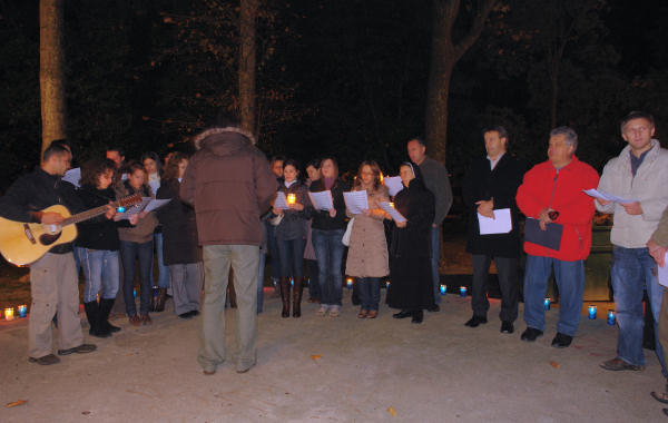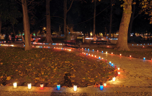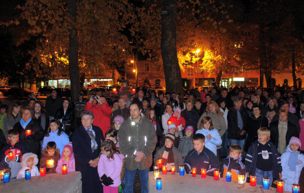 Metković, 19.11.2007. - Treću godinu za redom, u organizaciji Grada Metkovića i Udruge tjelesnih invalida Metković, Metkovci su se paljenjem svijeća u gradskom parku prisjetili stradanja Vukovara i Škabrnje.