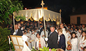 24.5.2008. - Nekoliko tisuća vjernika sudjelovalo je u četvrtak u tijelovskoj procesiji koja, prema običaju, prolazi starim dijelom Metkovića.