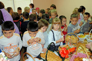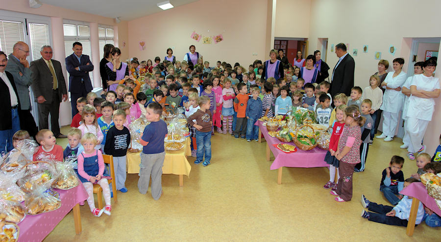 24.10.2008. - U Središnjem vrtiću u Metkoviću jučer je održana svečanost obilježavanja Dana kruha. Tom prigodom vrtić je posjetio metkovski gradonačelnik Stipo Gabrić Jambo sa suradnicima, a župnik župe Sv. Ilije fra Dušan Džimbeg blagoslovio je kruh, peciva i kolače što su ih djeca toga dana donijela od kuće. Nakon kraćeg programa, koji su izveli vrtićani, svi su pojurili prema krcatim stolovima, o čemu donosimo nekoliko fotografija koje možete povećati.