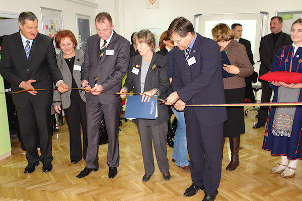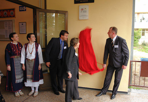 Pred ulazom u školu gospođa Mühlhaus, konzul Dodig i ravnatelj Jurković zajedno su otkrili ploču s natpisom o školi partneru, a potom, također zajedno, presjekli vrpcu na ulazu u novouređeni prostor u kome je smješten suvremeni centar za učenje opremljen multimedijalnim uređajima. Time je Gimnazija dobila tzv. njemačko sastajalište (treffpunkt.de) što će unaprijediti nastavu njemačkog jezika u školi.