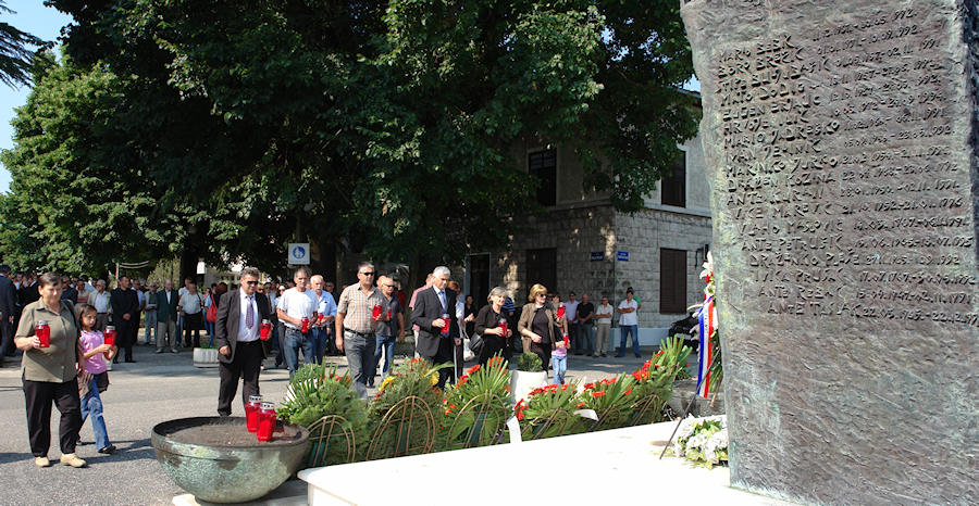 25.6.2009. - U povodu Dana državnosti jutros su metkovski gradonačelnik Stipo Gabrić i predsjednica Gradskog vijeća Darka Volarević sa suradnicima položili vijence pred Središnji križ na Gradskom groblju Sv. Ivana te pred Spomenik poginulim metkovskim braniteljima u Domovinskom ratu.