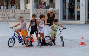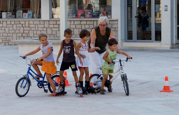28.8.2009. - Danas predvečer na obnovljenom dijelu Trga kralja Tomislava zabilježili smo prvu urbanu uporabu toga prostora. Nekoliko klinaca na rolama i biciklima vježbalo je vožnju između čunjeva pod budnim okom, vjerojatno, bake nekima od njih.