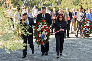 Metković, 8.10.2009. - Kao i za drugih državnih blagdana jutros su pred Središnji križ na Gradskom groblju te pred Spomenik poginulim metkovskim braniteljima u Domovinskome ratu položeni vijenci i zapaljene svijeće.