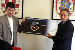 Predaja čeka upriličena je prošle subote u Vukovaru u uredu gradonačelnika koji je zajedno sa svojim zamjenikom Željkom Pinjuhom primio delegaciju invalidskih udruga Dalmacije predvođenu predsjednikom UOSI Prijatelj Antišom Puljevićem koji je predao ček. Nakon pozdravnog govora gradonačelnika Sabe, riječ je preuzeo Antiša Puljević i domaćine upoznao s projektom Moje svjetlo za moj Vukovar.