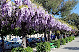 Bijela glicinija je penjačica koja može narasti i do 25 metara u visinu. Cvate u svibnju vrlo mirisnim cvjetovima skupljenim u viseće grozdove dužine 30 do 50 cm. Često ima još jednu sezonu cvatnje krajem ljeta, ali slabijega intenziteta.