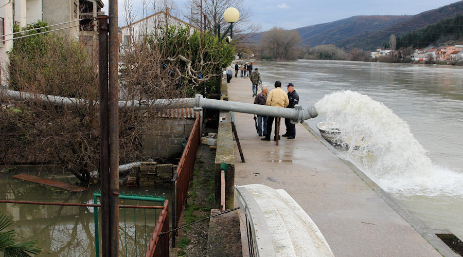 Istovremeno na desnoj strani uz samu Neretvu u naselju Unka zatekli smo u radu moćnu pumpu kapaciteta 300 l u sekundi kako u Neretvu izbacuje vodu koja je poplavila dvorišta i prizemlja kuća. Ista ta pumpa sinoć je riješila problem u Ulici Ivana Gundulića nakon čega se promet tom gradskom žilom kucavicom počeo normalno odvijati.