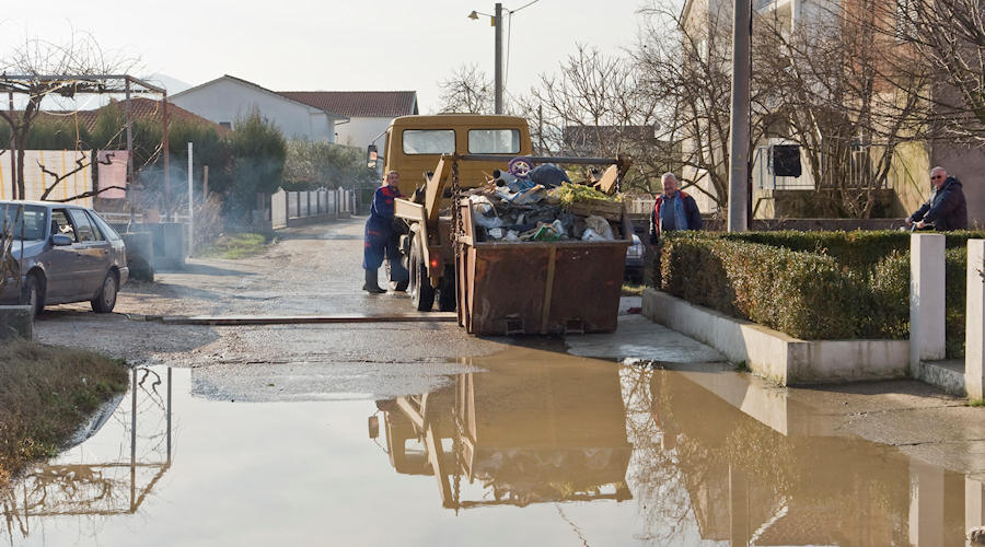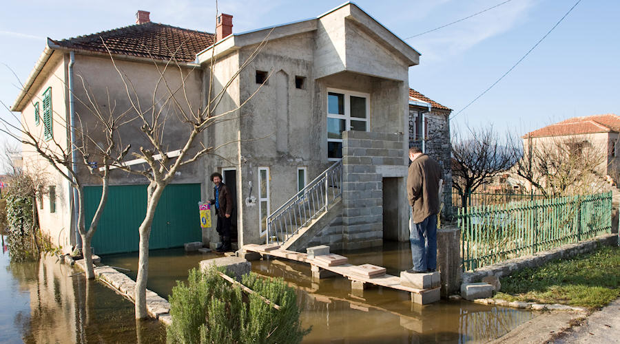 Dušana Šiljega zatekli smo u trupi kraj kuće. Iako je cesta suha za bilo što obaviti oko kuće još mu treba trupa. Snimamo i hrpu otpada koja je nekada bila namještaj. Malo dalje braća Dodig upravo su se iz auta uputila prema kući do koje još uvijek ne mogu po suhom. Kako je to izgledalo u ponedjeljak oko podne vidi se na donjoj fotografiji. Skrećemo u Ulicu neretvanskih gusara i na nekoliko mjesta vozimo kroz vodu duboku dvadesetaka centimetara. Kontejneri su puni uništenih stvari koje komunalci odvoze na odlagalište otpada. U Zagrebačkoj nas zaustavlja Baja uz molbu da ga slikamo na njegovoj bivšoj rivi. Dolje je slika istoga mjesta načinjena prošloga utorka kada se voda već bila povukla dvadesetak centimetara. Sva sreća je da prognostičari za sljedećih pet-šest dana najavljuju lijepo vrijeme s burom. Jedino bi sutra moglo biti oblačno, ali bez kiše.