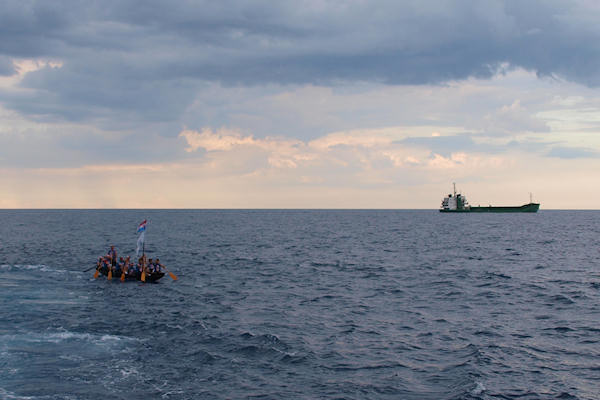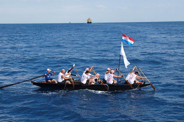 Veslanje do Ploča proteklo je gotovo u revijalnom ozračju, a lađari su se nakratko zaustavljali u Krvavcu II i u Opuzenu. Nakon dolaska u Ploče, gdje ih je pozdravio predsjednik Hrvatskog sabora Luka Bebić, u lađu se ukrcala nova posada koja je u 21,50 zaveslala na put od 134 milje koji će se nakon neprekidnoga veslanja završiti pred talijanskim Termolijem kada je prateći brod u nedjelju u 7,07 spustio sidro. Time je formalno označen kraj pothvata za koji su mnogi vjerovali da je nemoguć. Više o svemu donijet ćemo u široj reportaži nakon što pregledamo i obradimo gotovo tisuću fotografija koje smo snimili. Do tada pogledajte neke od njih.