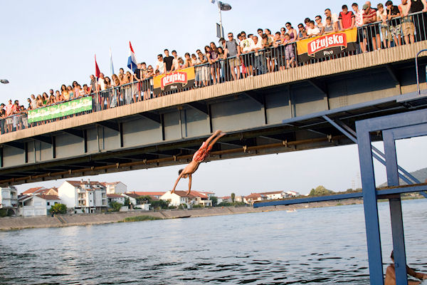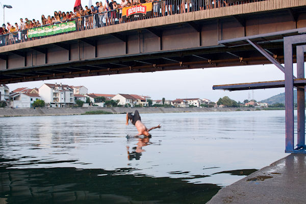 19.7.2010. - Pred oko tisuću gledatelja koji su se natiskali na obali i mostu u subotu su održani Skokovi u Neretvu, natjecanje što se već sedmu godinu održava pred Svetoga Iliju.