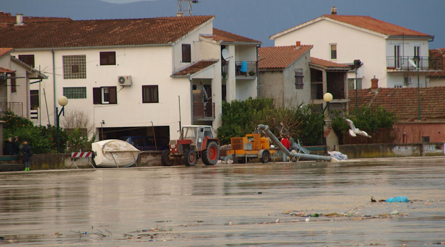2.12.2010. - Crne vijesti o porastu vodostaja obistinile su. Naravno, nije bilo nekog vodenog vala koji nosi sve pred sobom, kako ga mnogi zamišljaju, ali vodostaj Neretve prešao je 410 cm. Točnije teško ga je odrediti jer je mjerna letva koja završava na 4 m potpuno potopljena.