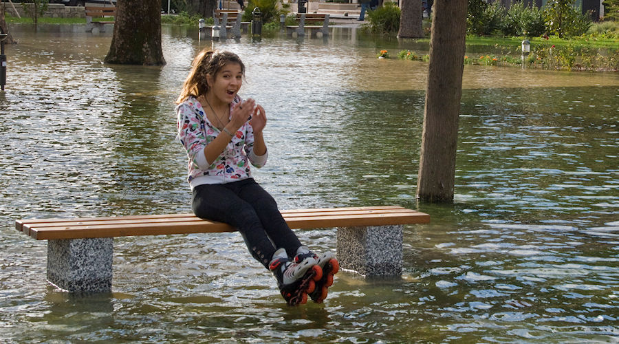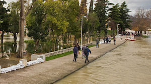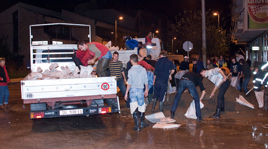 Bez obzira na sitna kolebanja Neretve koja je oko ponoći pala na oko 405 cm na desnoj strani grada voda se stalno nadire pa je značajno premašila siječanjsku visinu. Stoga su poplavljene i one kuće koje nisu bile prošle zime. Voda će tamo vjerojatno i dalje noćas rasti. Mi smo danas i večeras načinili dosta fotografija koje prikazuju stanje u poplavljenom Metkoviću na lijevoj obali. Sutra ujutro nadamo se kakvu čamcu da se otisnemo na desnu. Prognoze kažu da vodostaj Neretve svakako više ne bi trebao rasti što se tiče spuštanja vode iz hidroelektrana, ali vremenske prognoze ponovno najavljuju kiše i moguće probleme. Bez obzira na to Metković će još dugo biti pod vodom. Dvije zanimljive fotografije, ako načas zaboravimo na polavu. Kestenjastu zmiju na kestenjastu kestenu nije baš bilo lako otkriti. Iako letvica vodomjera nije na površini tragovi vode svjedoče o padu vodostaja. Borba metkovskih trgovaca s vodom. Na kraju fotografija mladića i cura koji su sami priskočili u pomoć i cjeli dan građanima punili vreće s pijeskom. Ovakvih ekipa po gradu je bilo više. Svaka im čast.