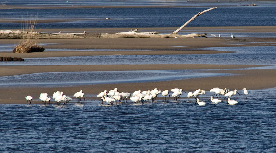 Vijest je glasila da se nakon puno, puno godina u Neretvi možda pojavio dalmatinski pelikan koji se nekada davno gnijezdio na našem području. Na žalost postao je tako rijedak gost naših krajeva da čak ni poznata Zbirka u Metkoviću nema ni jedan primjerak te ptice. Nakon duže potrage od ušća male Neretve pa do Parila, Bariša je svojim jakim dalekozorom ptivu locirao daleko na pučini, predaleko za objektiv našega fotoaparata. Stoga smo se zadovoljili s fotografijom povelike skupine žličarka koje su na jednome sprudu u pijesku tražile račiće.