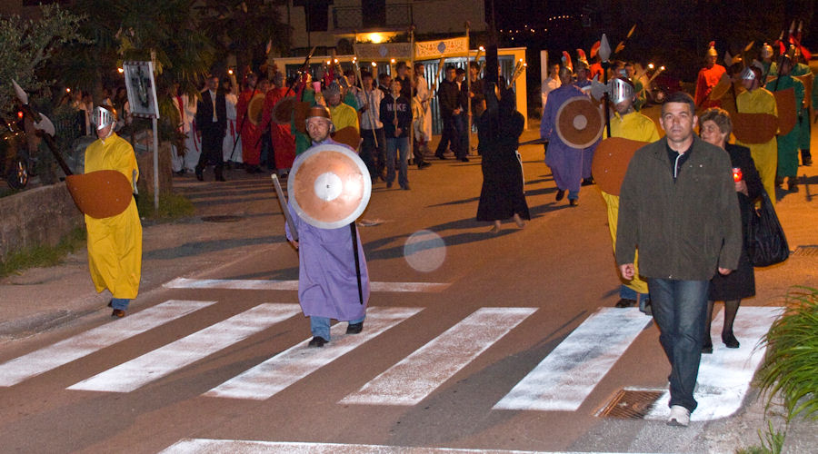 23.4.2011. - U dvjema procesijama što su se večeras kretale gradskim ulicama sudjelovale su tisuće građana. Teško je procijeniti koliko ih je bilo, ali najmanje pet-šest tisuća, jest jer su u vrijeme njihova održavanja ostale gradske ulice bile gotovo puste. Procesijama su prethodili obredi Velikoga petka, nakon kojih se masa vjernika uputila gradskim ulicama. Mi smo uspjeli načiniti fotoreportaže iz obiju župa.