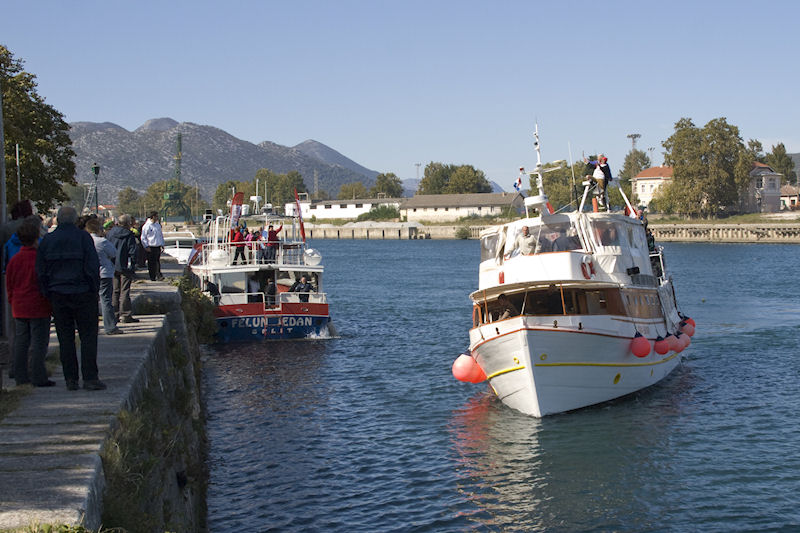 15.10.2011. - Dvjestotinjak raspjevanih slovenskih turista na dvama brodovima danas je doplovilo Neretvom do Metkovića te se iskrcalo na Velikoj rivi. Da šušur bude veći pobrinuli su se dubrovački umirovljenici koji su se na Trgu kralja Tomislava iskrcali iz dvaju autobusa.