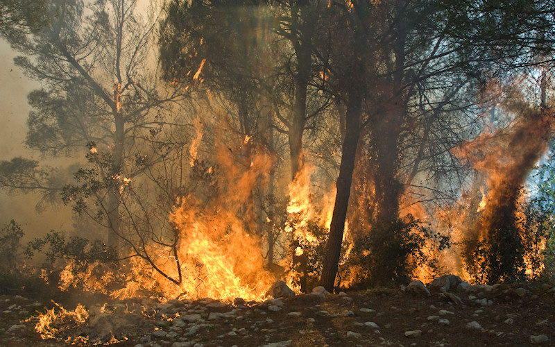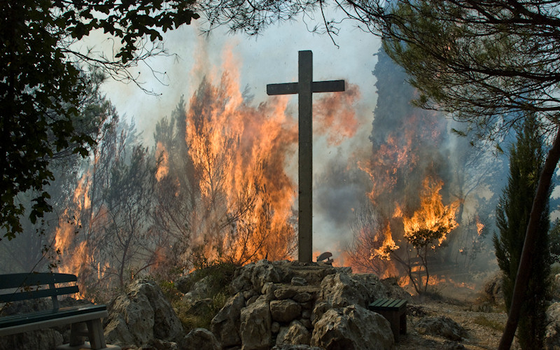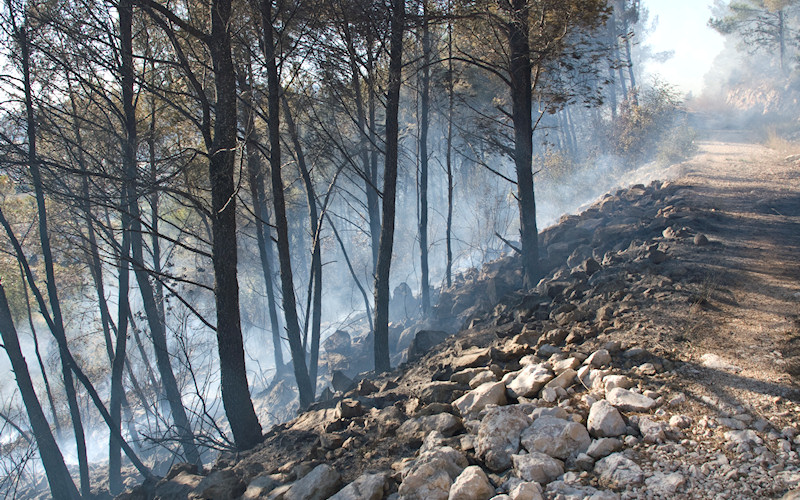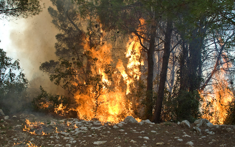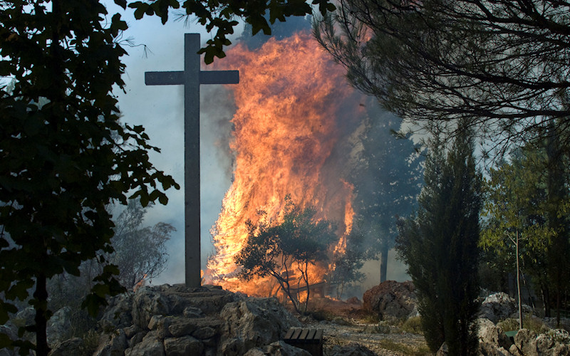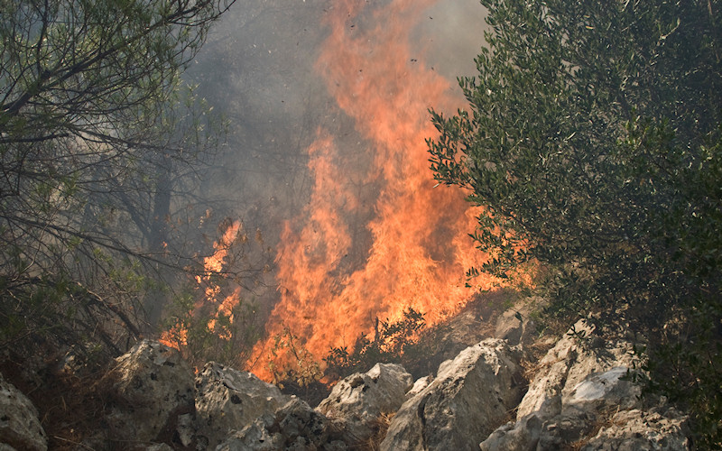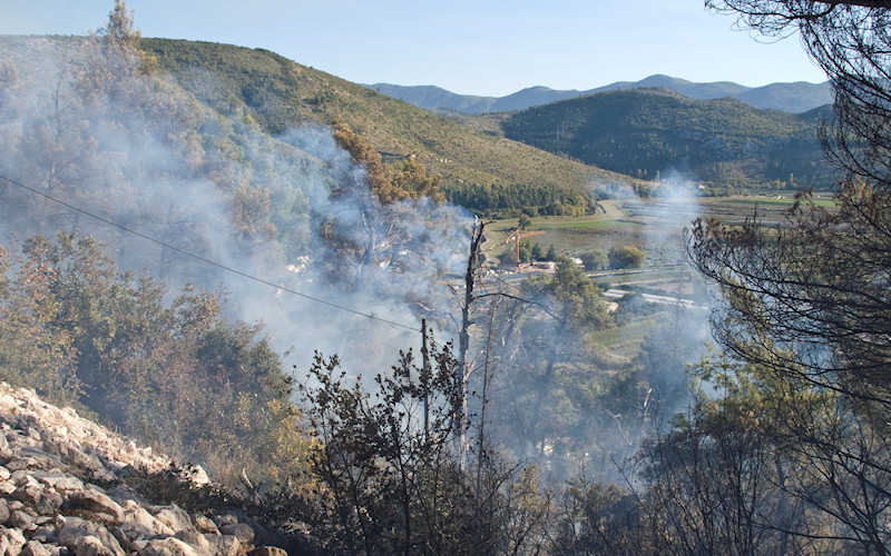18.10.2011. - Dok su se metkovski vatrogasci borili s velikim požarom između Metkovića i Vida koji je ugrozio plastenike s povrtlarskim kulturama buknuo je požar na južnim padinama park šume Predolac.